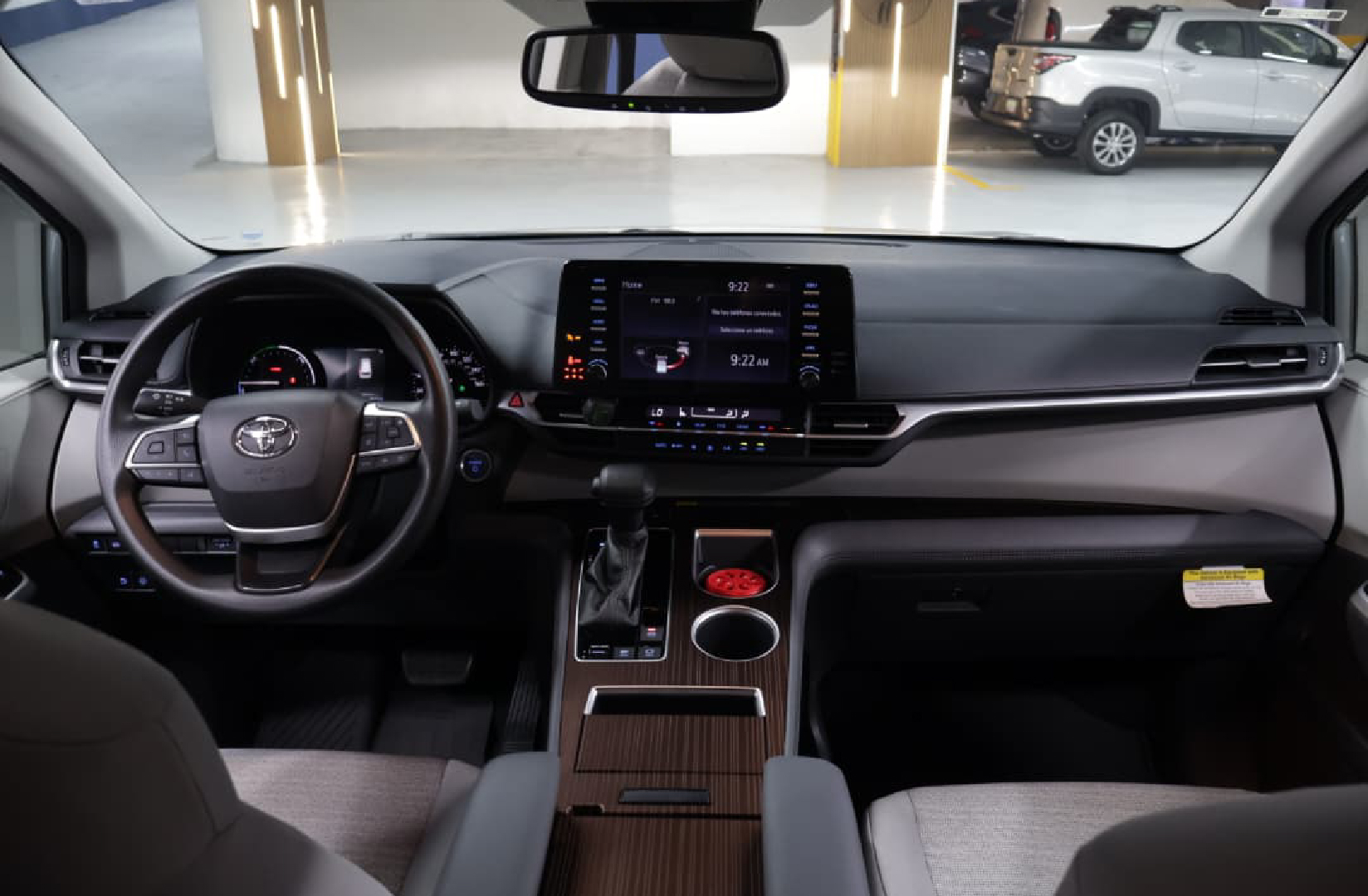Interior muy cómodo, hasta 8 pasajeros, sistema de infoentretenimiento con pantalla táctil, múltiples puertos USB, tercer fila plegable, opciones de asientos capitán con apoyo para pies (ottomans) en versiones altas.